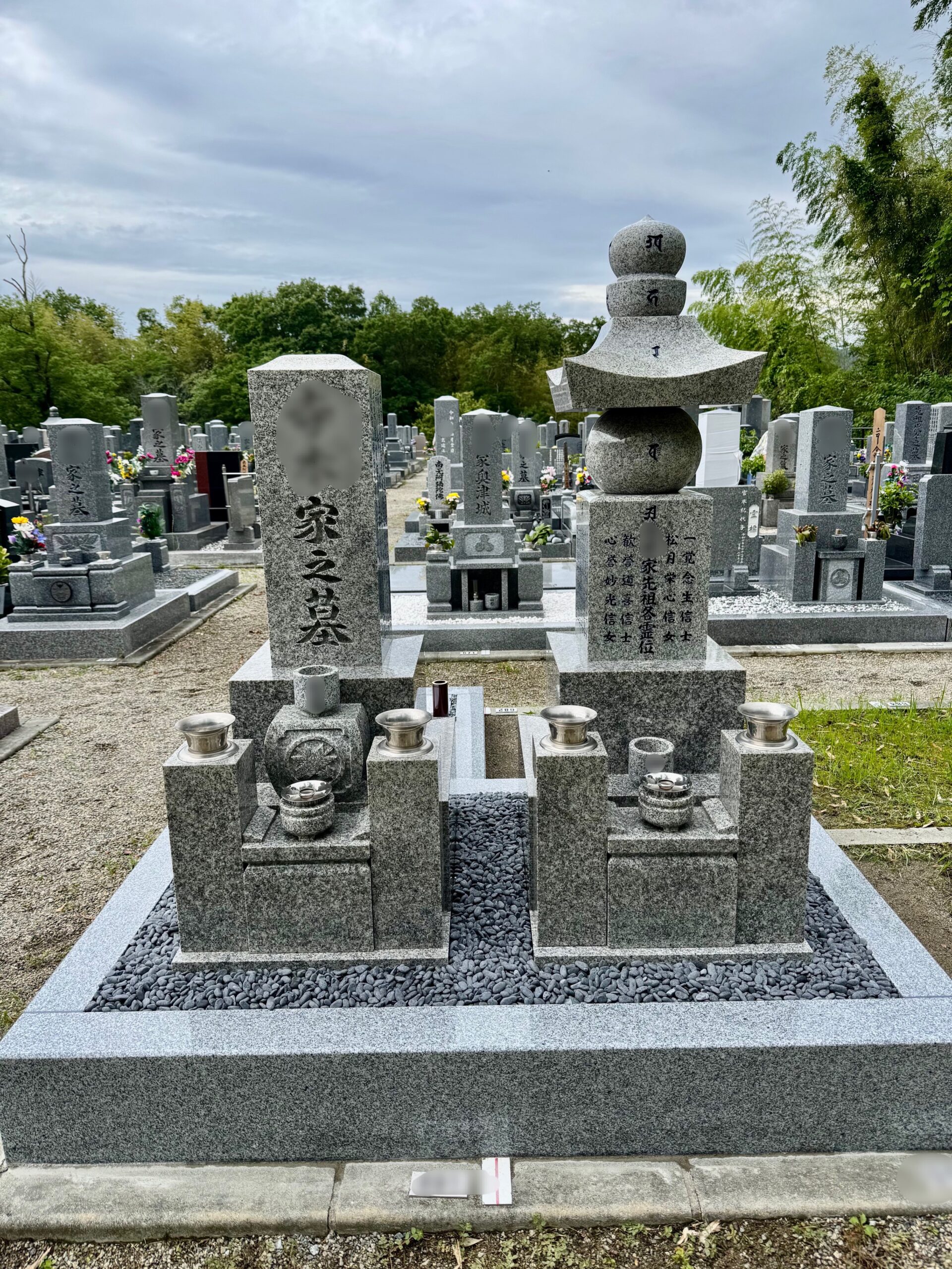 ー篠田山第6自由墓地ー・8寸角御碑.五輪塔8寸5分角.納骨場所 移設・墓囲い石据え付け L型コーナー耐震金具・砕石.転圧.砂.セメント.防草マサ.グレー砂利仕上げ